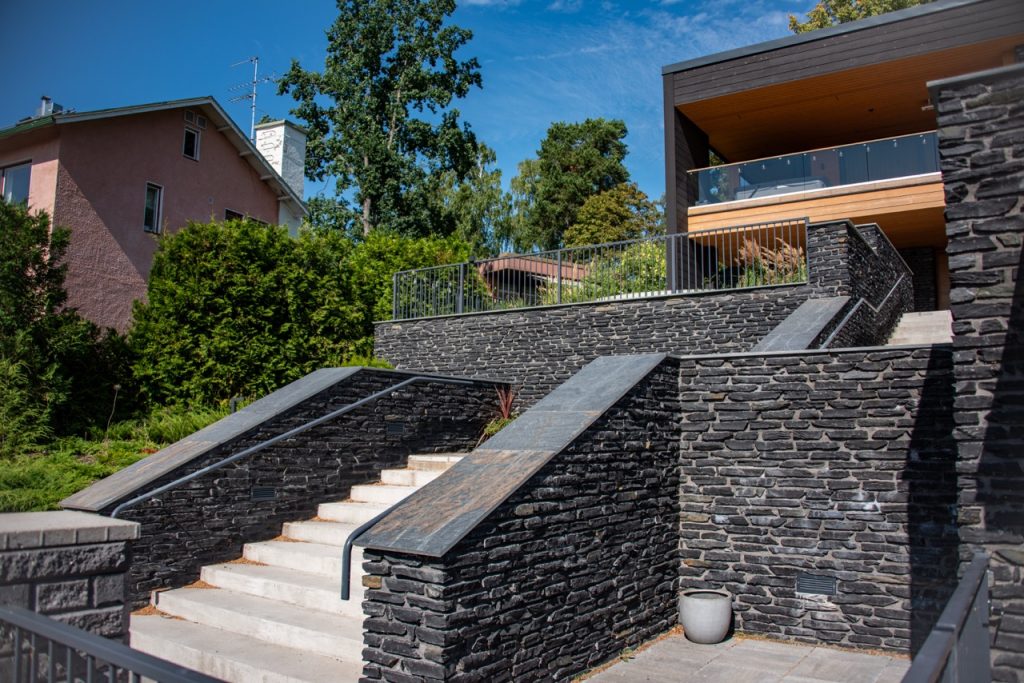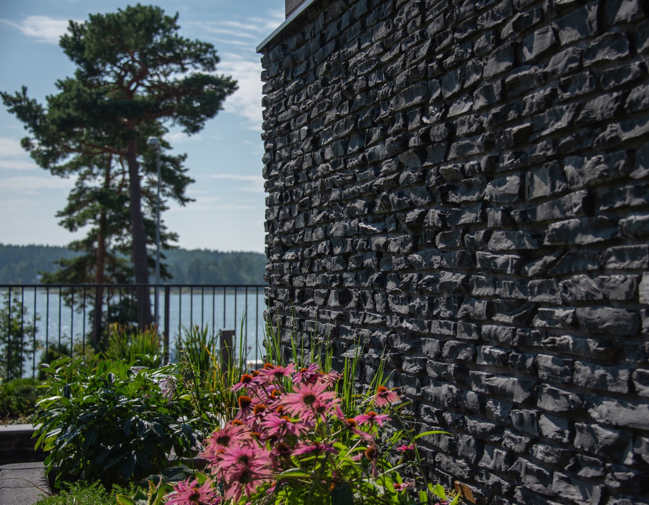 Käytetyt tuotteet:Sisu Vuono muurauskiviBernardos liuskekivilaatta